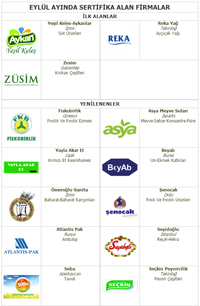 EYLÜL AYINDA SERTİFİKA ALAN FİRMALAR